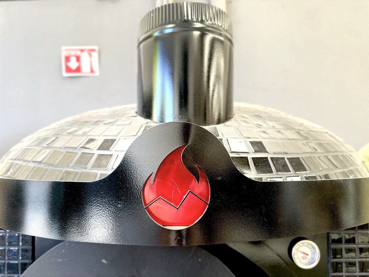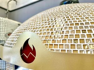 Horno NEAPOLIS gas y leña hecho con materiales refractarios, base de cocción en arcilla refractaria alma de metal y ladrillos refractarios, acabado en azulejo veneciano y base de metal.